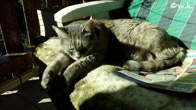Vormonat Noch Tage bis zu meinem 10ten 16. September 2014 ↓ Der Spätsommer läuft und endlich läßt sich - nach vielen echt kalten Tagen - auch die Sonne mal wieder blicken. Sogar für länger und mit angenehmen Temperaturen knapp über 20°C. So könnte es gerne noch 'ne ganze Weile sein und bleiben!! Hauptsache noch nicht richtig kalt und kein Schnee! Mici freut sich, wenn sie - je nach Lust und Laune - auf den Balkon rausspringen kann und sich in die Sonne legen kann. Und wenn es ihr dann zuviel Wärme ist, dann geht sie eh von ganz alleine wieder rein. So wie sie eben mag.