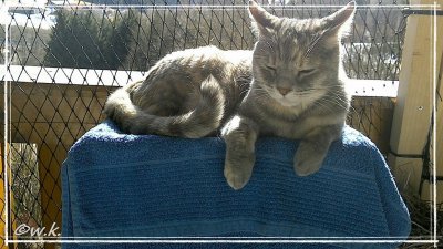 10. März 2015 ↓ Die letzten tage waren sonnig und relativ warm. So konnte Mici auch wieder längere Phasen draußen auf Balkonien verbringen. Und wenn es ihr dann doch irgendwie noch zu wenig warm war, kommt sie eh immer von selbst reingetapst und legt sich im Wohnzimmer auf die Heizung oder in ihr heizungsnahes Körbchen. Ich denke, für Mici ist die Welt schon in Ordnung .. zumindest läßt ihr zufriedenes Verhalten keine anderen Schlüsse zu. Ich bin glücklich, wenn es meiner Maus gut geht!! :)) [Weitere Fotos natürlich auf Micis facebook-Seite]